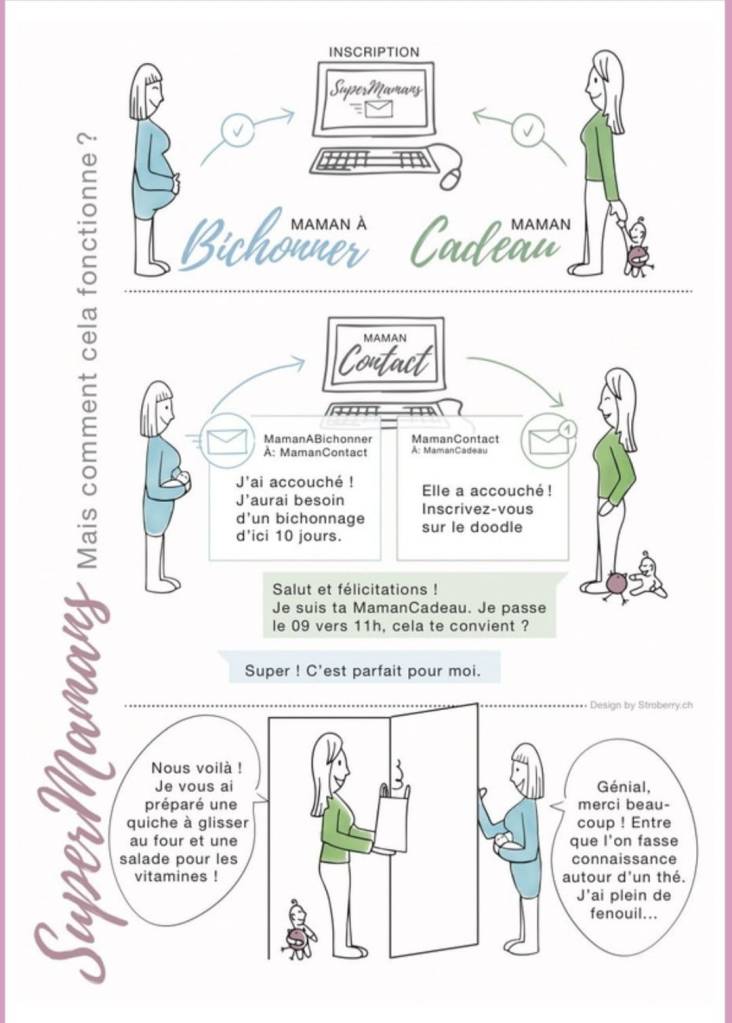 Super mamans France est une association qui vient en aide aux nouvelles mamans. On peut s’y inscrire comme Maman cadeau ou y demander de l’aide comme Maman à bichonner. Les images en expliquent d’avantage. www.supermamansfrance.fr