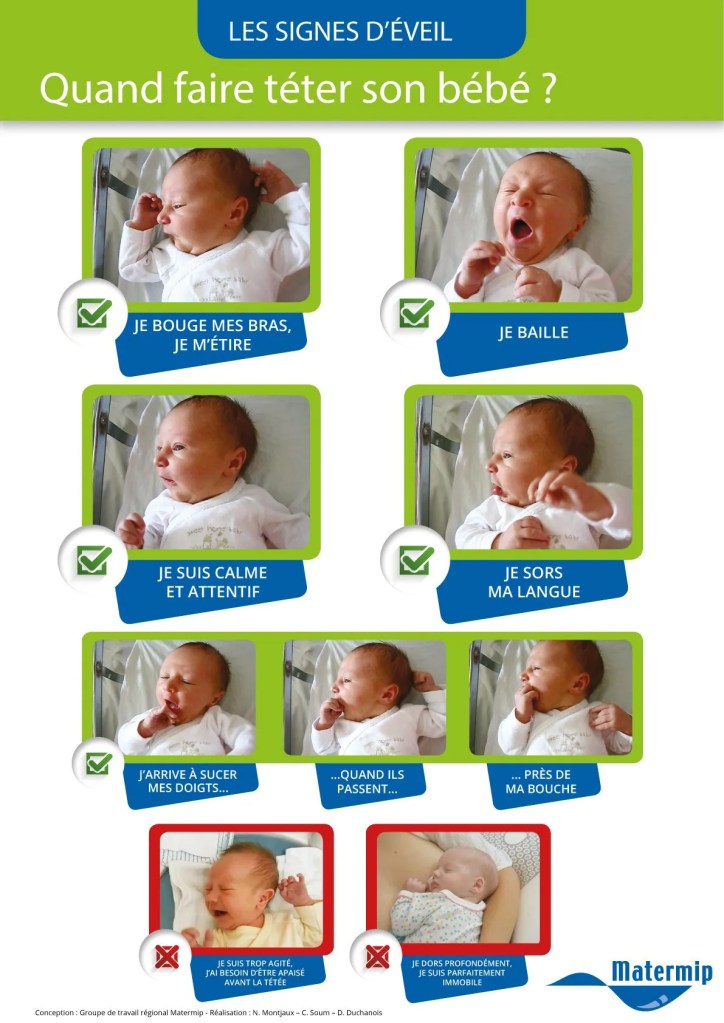 - L’éveil agité présente un bébé plus tonique, qui cherche à tétée avec des réflexes de succion très marqués.